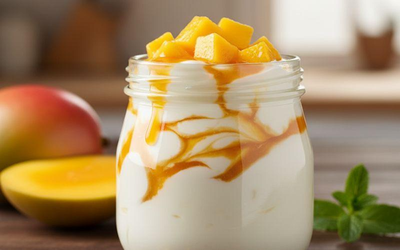 - Vị xoài thơm ngọt hài hòa với vị chua béo của sữa chua