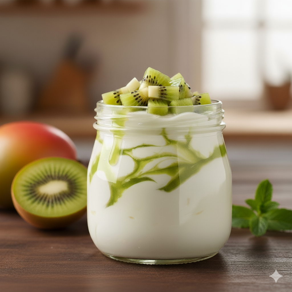 Làm sữa chua trái cây vị kiwi tại nhà là món ăn thanh mát, bổ dưỡng và giàu năng lượng, được nhiều người yêu thích nhờ hương vị chua ngọt hài hòa và màu xanh tươi mát đặc trưng. Khi thưởng thức, vị chua nhẹ của sữa chua hòa quyện cùng vị ngọt thanh và hương thơm tự nhiên của kiwi tạo nên cảm giác sảng khoái, dễ chịu. Sữa chua trái cây vị kiwi không chỉ ngon miệng mà còn mang lại nhiều lợi ích cho sức khỏe: kiwi chứa nhiều vitamin C, E, chất xơ và chất chống oxy hóa giúp tăng cường đề kháng, hỗ trợ tiêu hóa và làm đẹp da. Món sữa chua trái cây này rất phù hợp cho những ai yêu thích hương vị tự nhiên, nhẹ nhàng và tốt cho cơ thể, đặc biệt là trong những ngày hè oi bức.